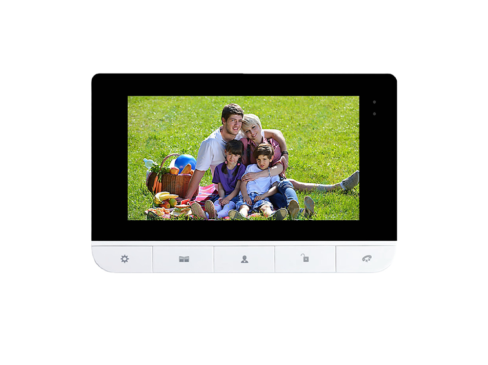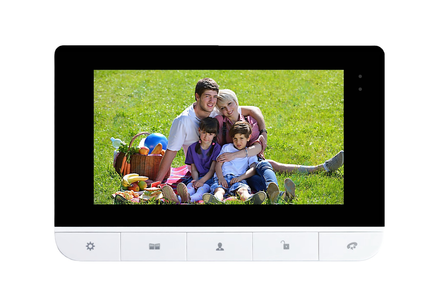 AK-MS7F is a multiple media video door phone indoor monitor. It can connect 2 outdoor station+ 4 indoor monitors + 2 extra CCTV cameras & alarm sensor. Support standby clock, no disturb mode, support capture photo and record video.